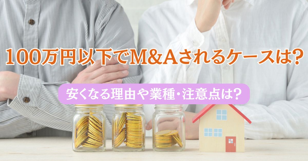 - 2026年4月15日100万円以下でM&Aされるケースは?安くなる理由や業種・注意点も解説!