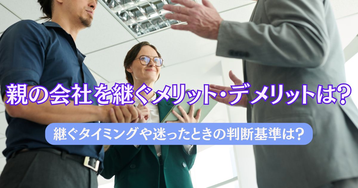 - 2026年2月25日親の会社を継ぐメリット・デメリットは?継ぐタイミングや手続き・迷ったときの判断基準も紹介!